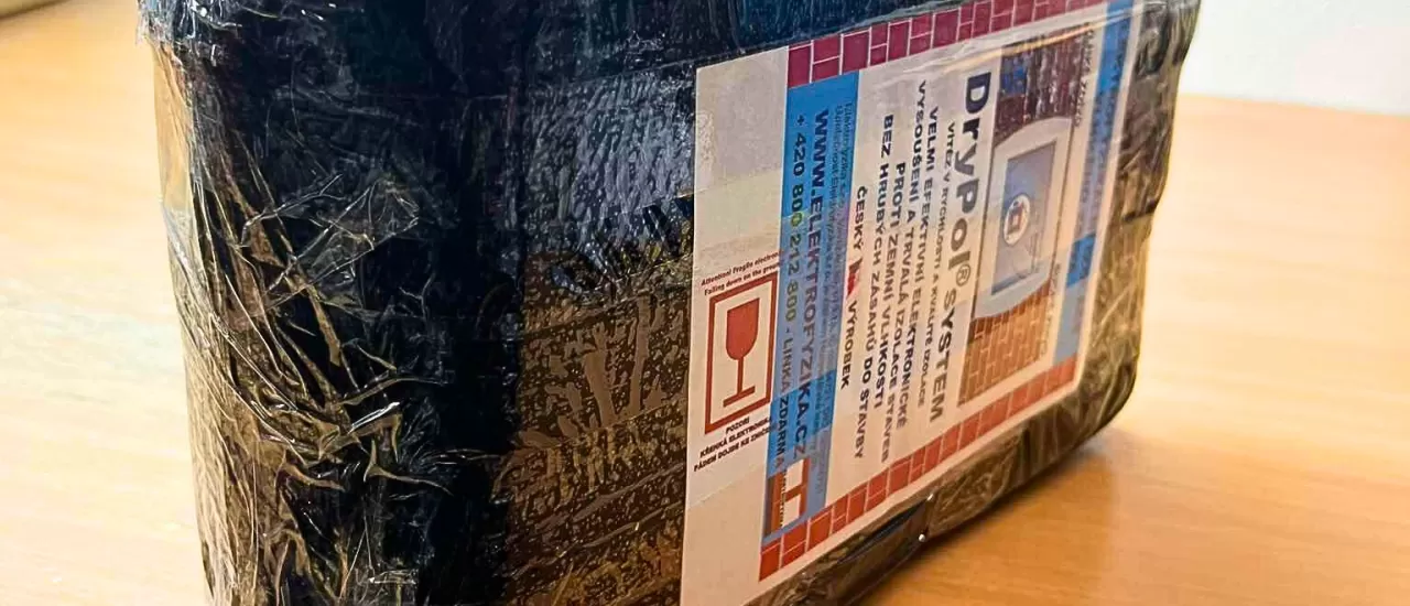A takhle už vypadá kompletní a zabalený balíček s přístrojem DryPol®, který je připravený na odeslání k vlastní samoinstalaci u vás doma