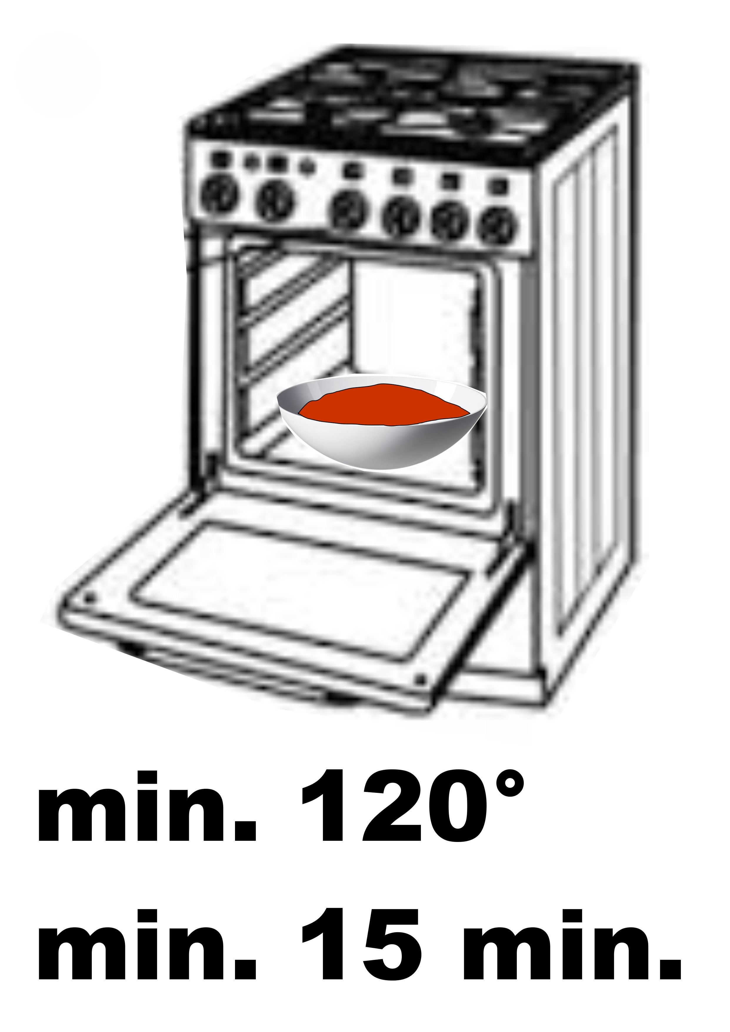 Vyvrtané zdivo vložte i s miskou do trouby předehřáté na 120 °C. Troubu zavřete a vypečte vyvrtané zdivo po dobu 15 minut při teplotě 120 °C. Po této době misku vyjměte a nechte vychladnout.